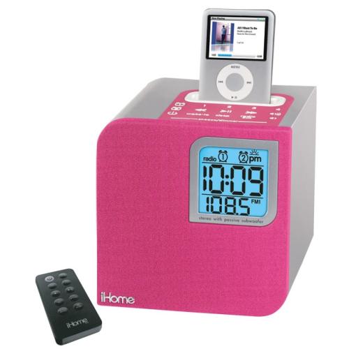 The Gadget: The iHome iH12, which is an iPod dock, alarm clock, AM/FM radio and stereo speakers all in one compact black box. The BR means it's black and it comes with a remote.