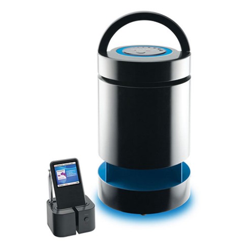 It might look like a bucket, but this is actually the Grundig Emanate - a weatherproof speaker system for the iPod, ideal for British summer time...(Via Tech Digest.)