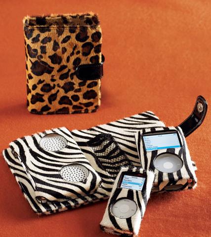 This animal-print leather case accommodates all the essentials for your iPod or iPod Nano.