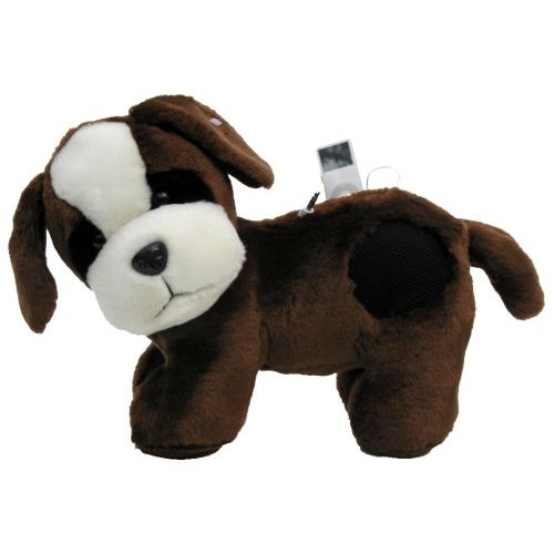Cute posted plush dog with iPod speaker on back;Soft plush with build in speaker;Universal jack easy to connect with any MP3, iPod, CD player.
